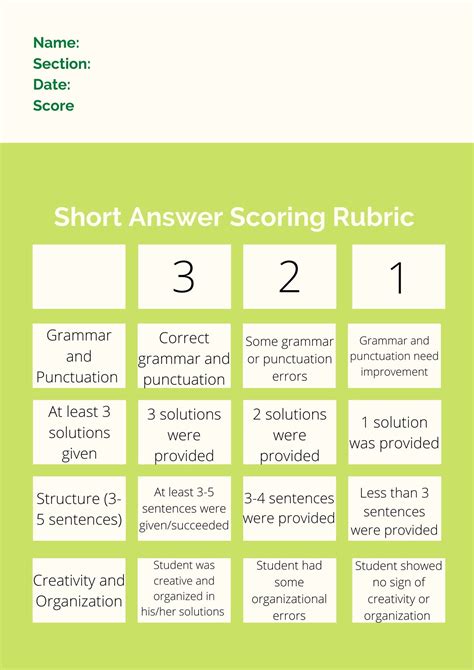 Download Rubric For Scoring Short Answer Doc
